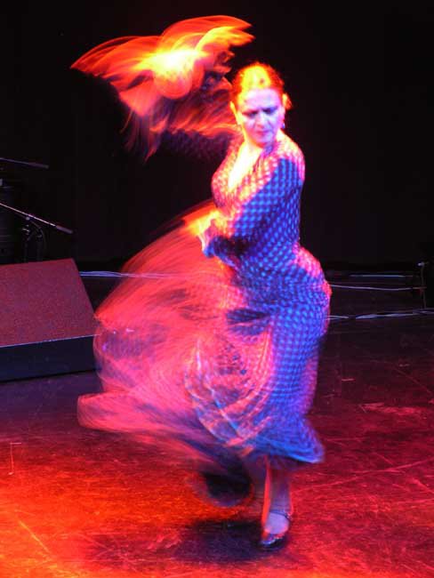 In Moscú, Rusia at the theatre of the Music Conservatory as guest artist with the flamenco Moscow company Costa del Flamenco 2003.